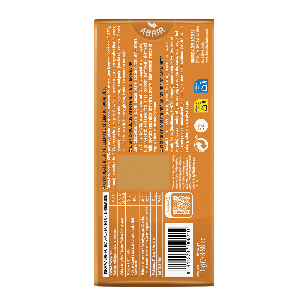Dark Chocolate, 58% Cocoa with Peanut Cream