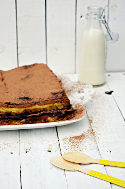 A continuación y una vez frío ponemos la crema pastelera, volvemos a colocar otra base de galletas y entonces ponemos la mermelada (puede ser de la que queráis)