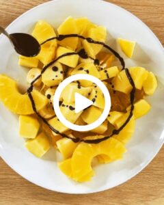 Sirve inmediatamente como un snack fresco y delicioso. También puedes dejarlo reposar unos minutos y meterlo al frigorífico para que el chocolate se endurezca ligeramente, si prefieres una textura más firme.