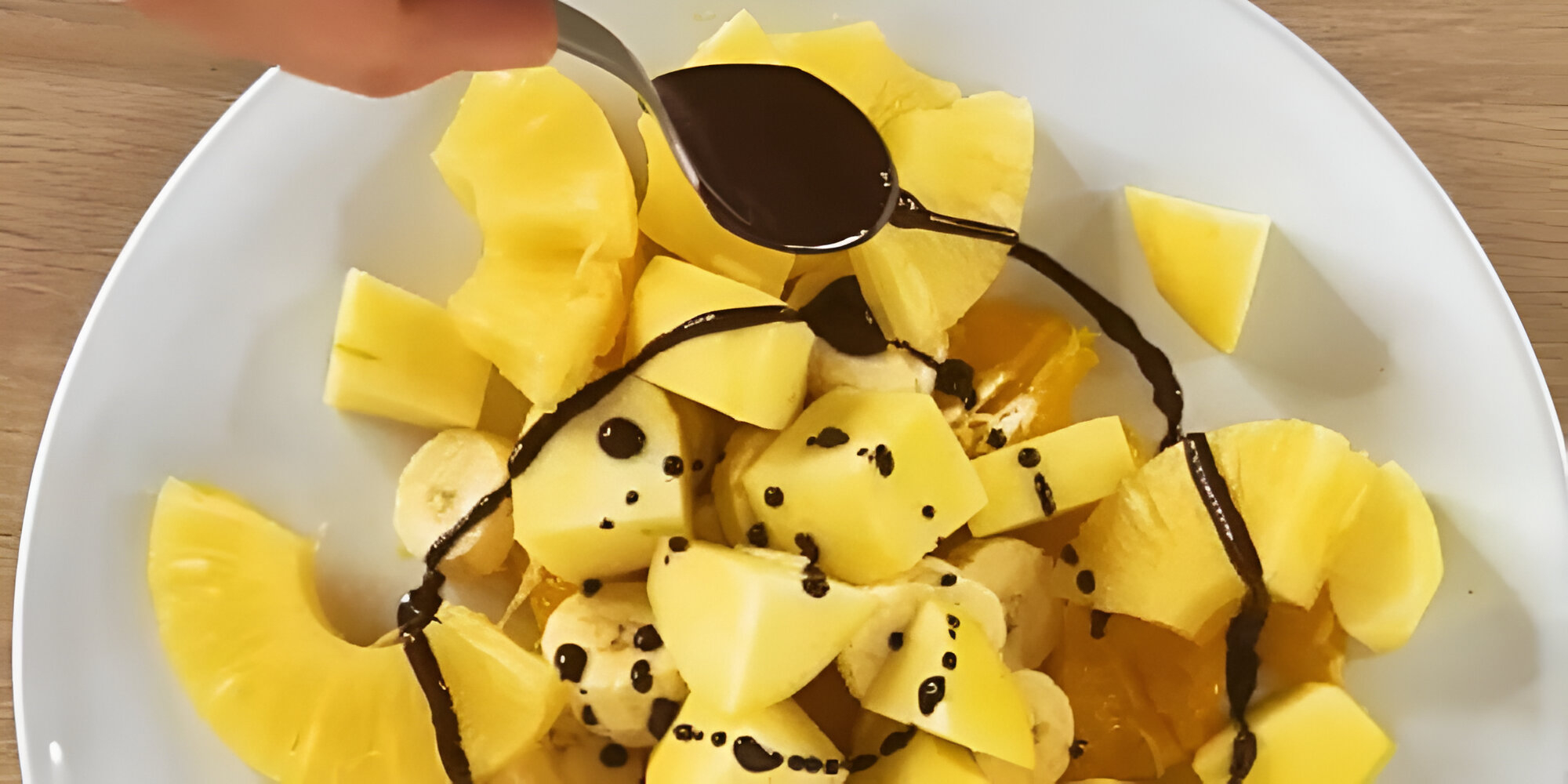 Una vez que el chocolate esté listo, vierte una cantidad generosa sobre la fruta. Mezcla bien para que cada trozo de fruta quede cubierto con el delicioso chocolate. - Disfruta:
